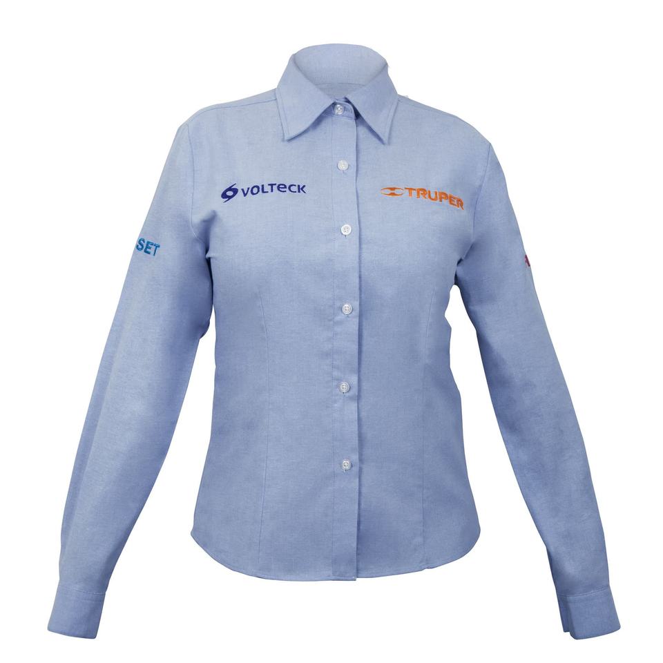 Truper CAM-AZ-DLXL Women's Blue Poplin Cotton Formal Long-Sleeved Shirt Size XL Embroidered Floral Logo Polos Short for Autumn