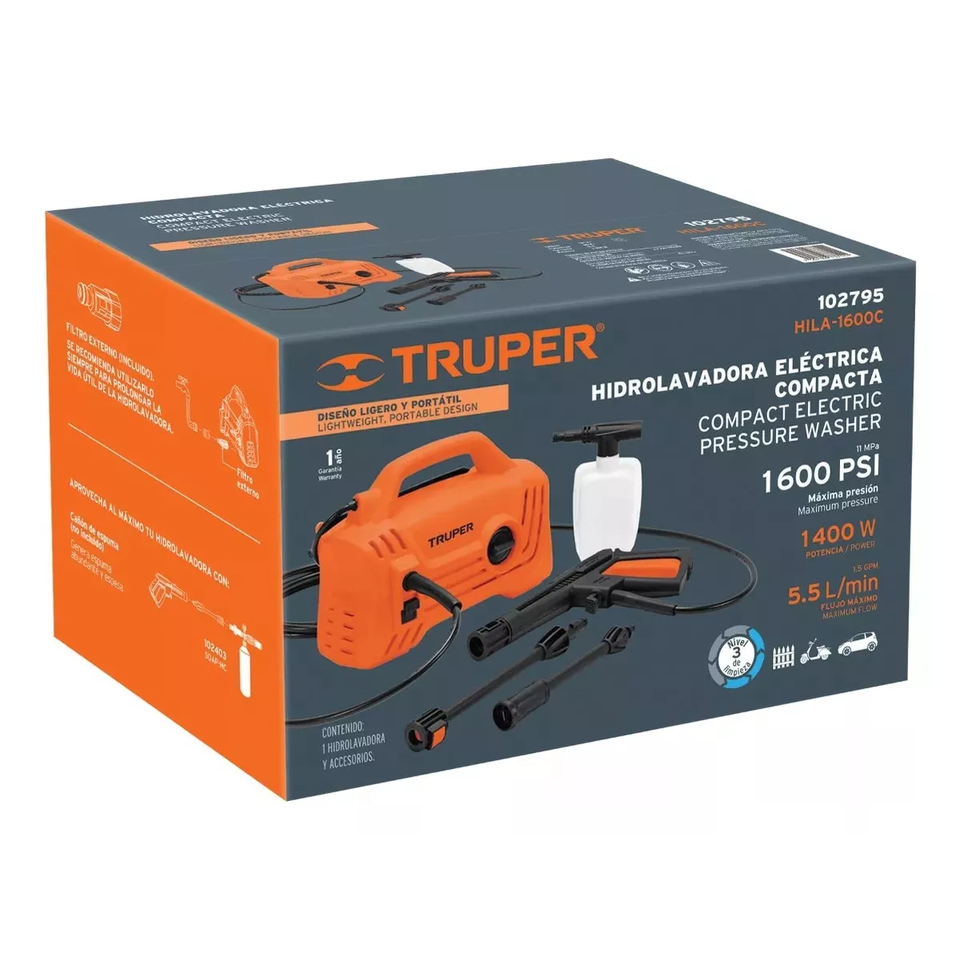Truper HILA-1600C Compact Electric Pressure Washer 1600psi High Pressure Cleaner