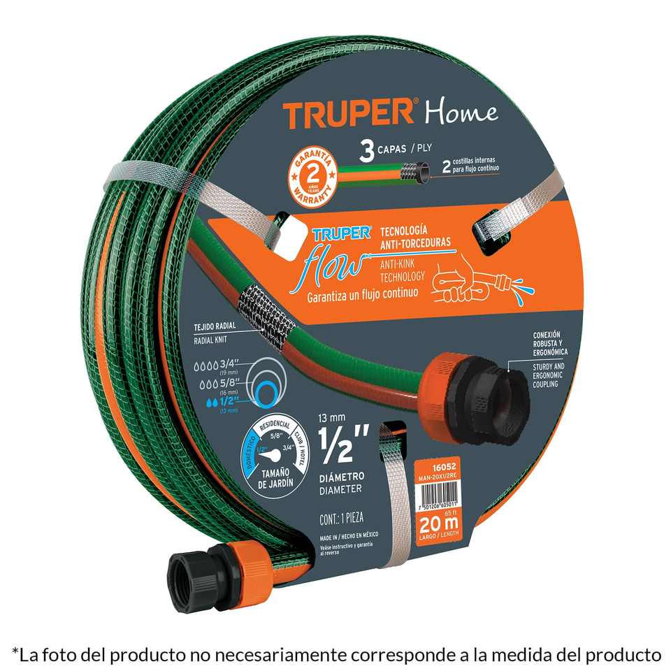 Truper MAN-15X1/2RE 1/2' Reinforced Garden Hose 3 Layers 150ft Length Plastic Connections High Cost 50m Garden Hose Reel