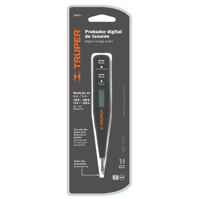 มัลติมิเตอร์ดิจิตอล Truper PROVO-1 เครื่องทดสอบแรงดันไฟฟ้ากระแสสลับ/กระแสตรง พร้อมไฟ LED สีเขียว วัดความถี่ อุณหภูมิ และแบตเตอรี่ สำหรับงานไฟฟ้า