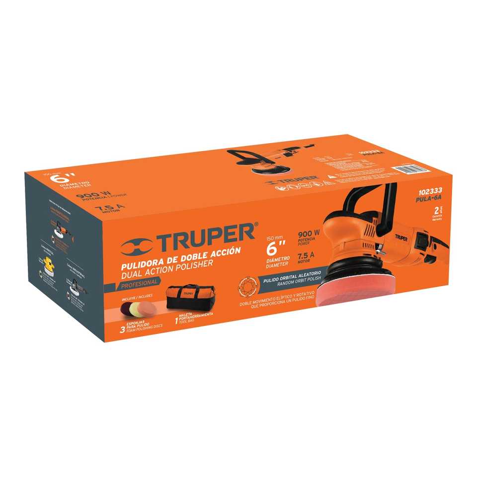 Truper PULA-6A 900 W Dual Action Professional Polisher 6\" Car Waxer for Painting Care 5\" Disc Dia 3m Cable Length 21mm