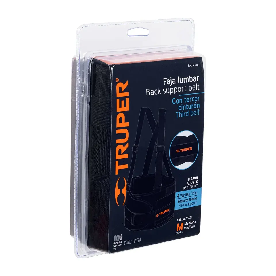 Truper Talla M Caja Con 2 Unidades De Faja Lumbar Back Support Con Tercer Cinturón