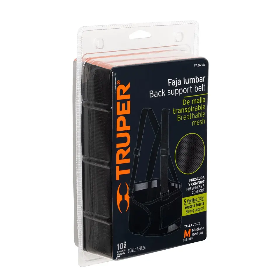 Truper Talla M Caja Con 2 Unidades De Faja Lumbar De Malla Transpirable Soporte Para La Espalda