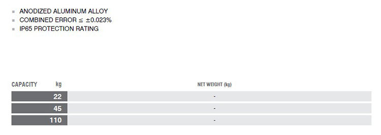 Deflection at nominal load:0.43 mm (22 kg), 0.7 mm (45 kg), 0.4 mm (110 kg)