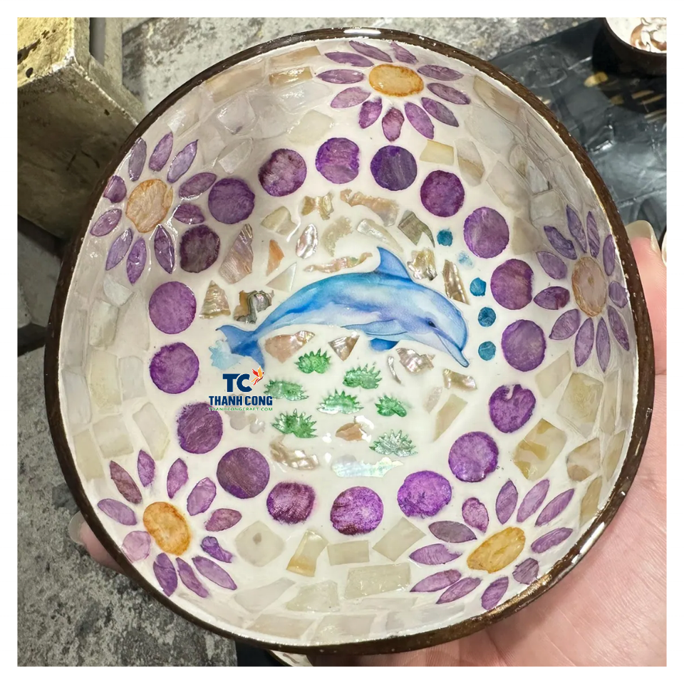 ชามมะพร้าวที่ใช้เป็นของขวัญระดับพรีเมี่ยมชามมะพร้าวไข่มุกทำด้วยมือ