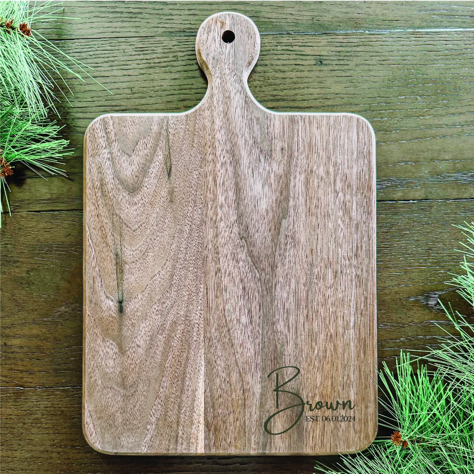 เขียงไม้สับสวยงามผู้ผลิตที่เชื่อถือได้ซึ่งมีลวดลายไม้ที่เป็นเอกลักษณ์และพื้นผิวขัดด้วยมือที่สมบูรณ์แบบสำหรับการแสดงหรือการใช้งาน