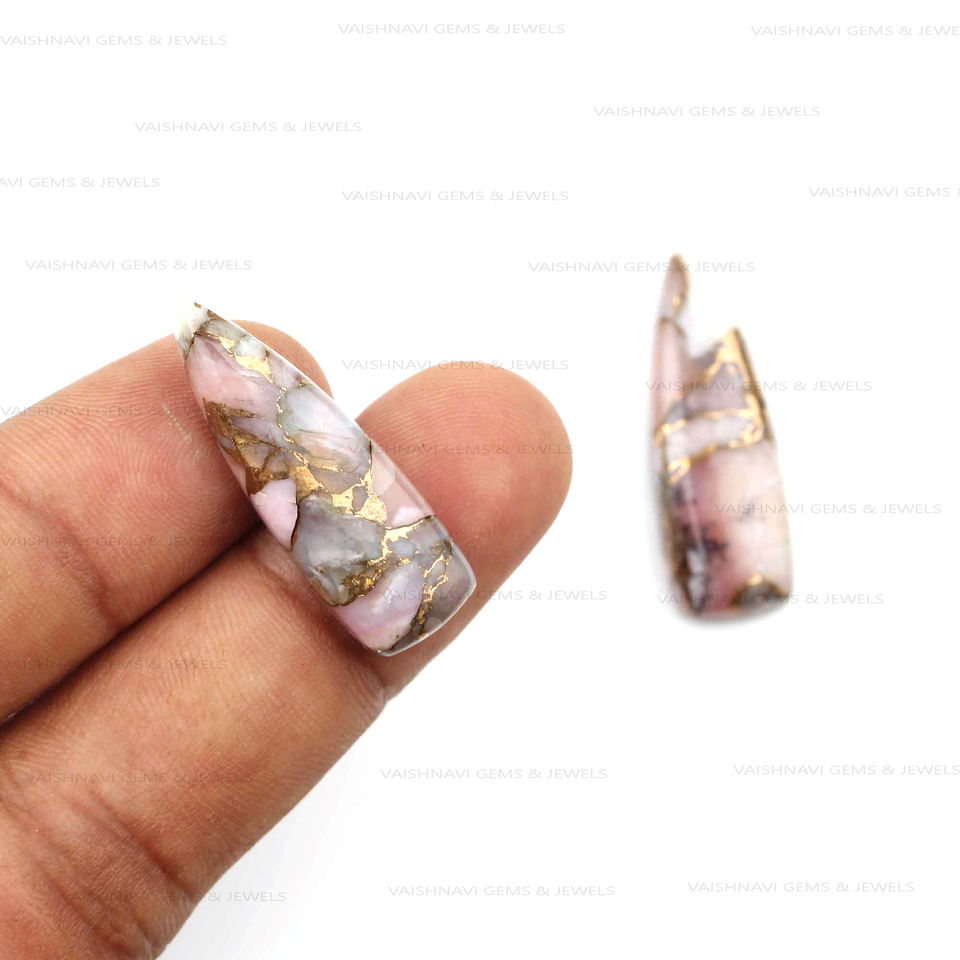 เครื่องประดับทองแดงโอปอลสีชมพูธรรมชาติอันไว้ใจได้ยาว10X30มม. ล้านล้านล้านแบนหลังแบนปรับเทียบอัญมณีหลวมสำหรับการทำเครื่องประดับ