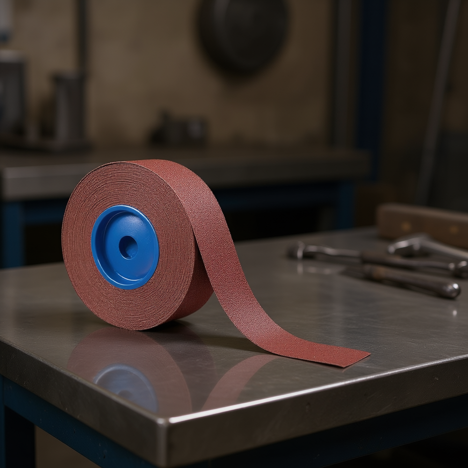 ผ้าทรายขัดเงาแบบม้วน รุ่น Ab1050 คอรันดัม ขนาด 50x50000 มม. ความละเอียด 180 กริต สำหรับขัดโลหะ