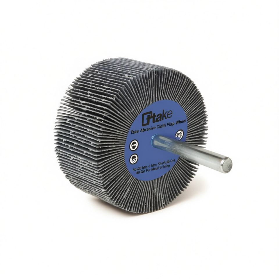 แผ่นขัดกระดาษทรายแบบวงล้อ 80x20 มม. แกน 6 มม. ความหยาบ 80 กริต สำหรับขัดโลหะ