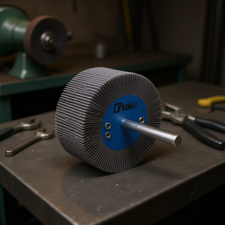 แผ่นขัดกระดาษทรายแบบวงล้อ 80x30 มม. แกน 6 มม. ความหยาบ 80 กริต สำหรับขัดโลหะ