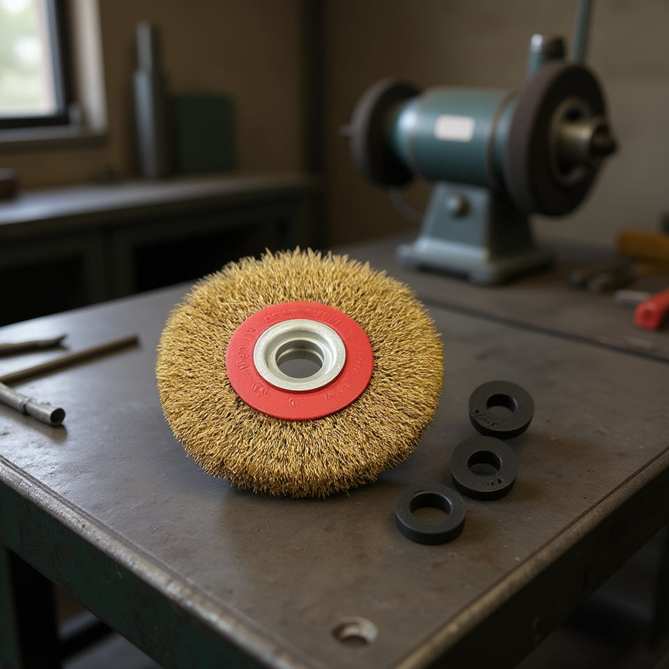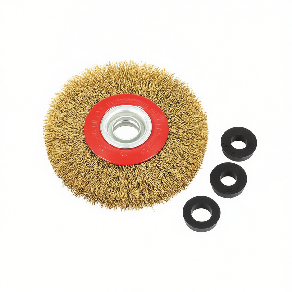 แปรงกลม 200x25 มม. ลวดเหล็ก 32 มม. สำหรับเครื่องเจียรแบบตั้งโต๊ะ