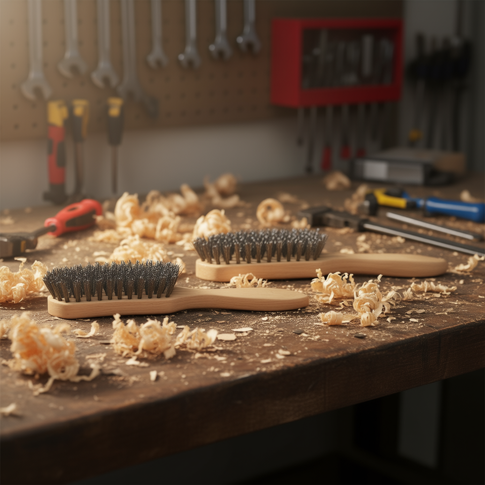แปรงขัดมือด้ามไม้ ขนแปรงเหล็ก 6x15x25 มม. 24 เส้น