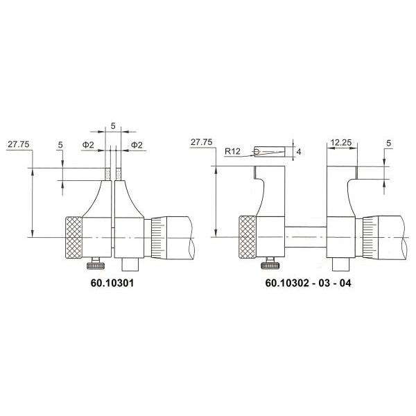 ไมโครมิเตอร์แบบแท่ง 0-200 มม. ความละเอียด 0.001 มม. รุ่นสแตนเลส 60.10301