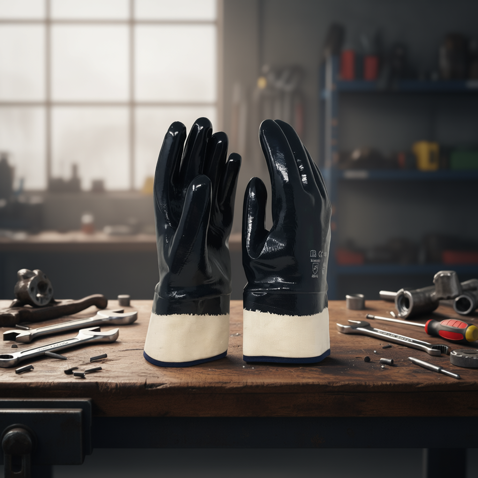 ถุงมือผ้าฝ้ายเคลือบไนไตรล์ ขนาด 10 ป้องกันการบาด ถุงมือทำงาน