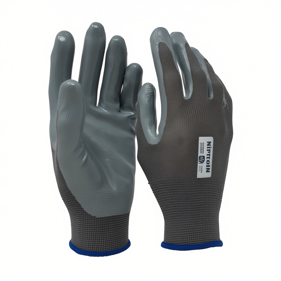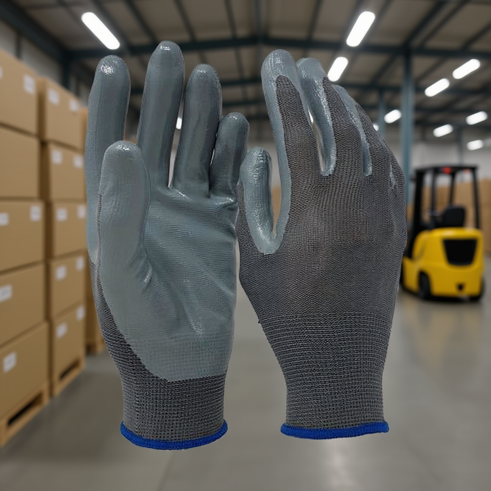 ถุงมือโพลีเอสเตอร์เคลือบไนไตรล์ ระดับการป้องกันการบาด 11 สำหรับงานโลจิสติกส์และคลังสินค้า