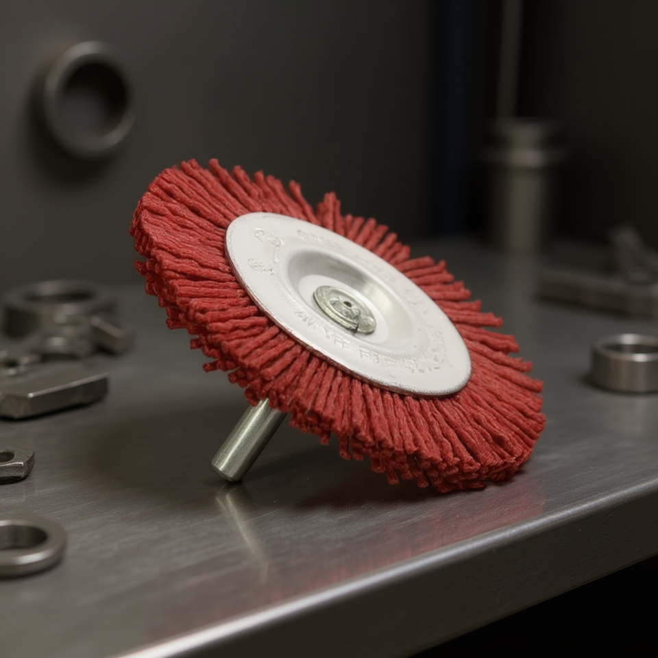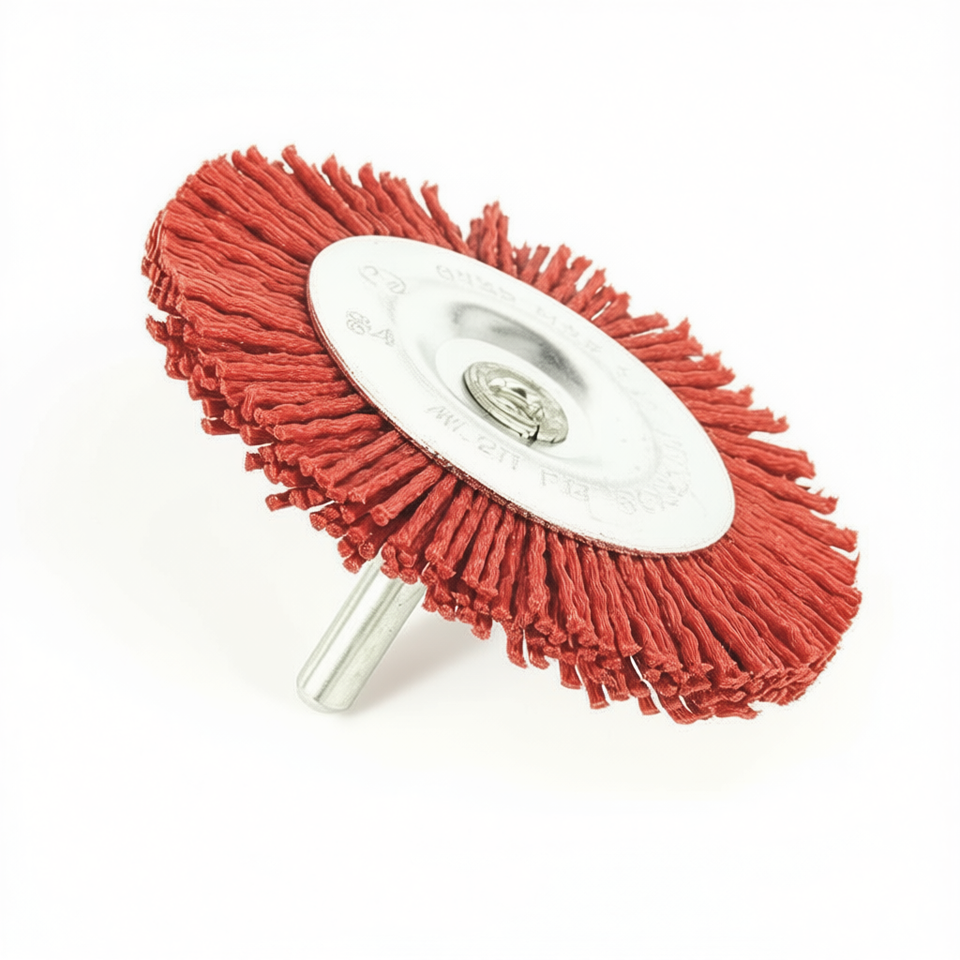 แปรงขนไนลอนแบบวงกลม ขนาดแกน 6 มม. ความหยาบ 180 กริต สำหรับขัดโลหะ