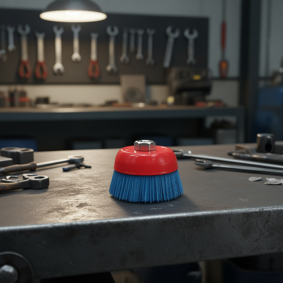 แปรงถ้วยไนลอน 180 มม. สีฟ้า เกลียว M14 8500 รอบต่อนาที สำหรับทำความสะอาดโลหะ