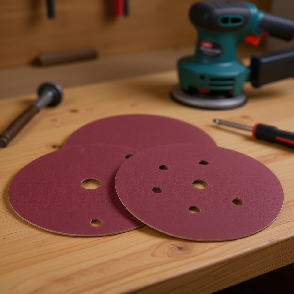 แผ่นขัดเวลโคร 120 กริต 8+1 รู ผลิตจากคอรันดัม สำหรับเครื่องขัดแบบออร์บิทัล
