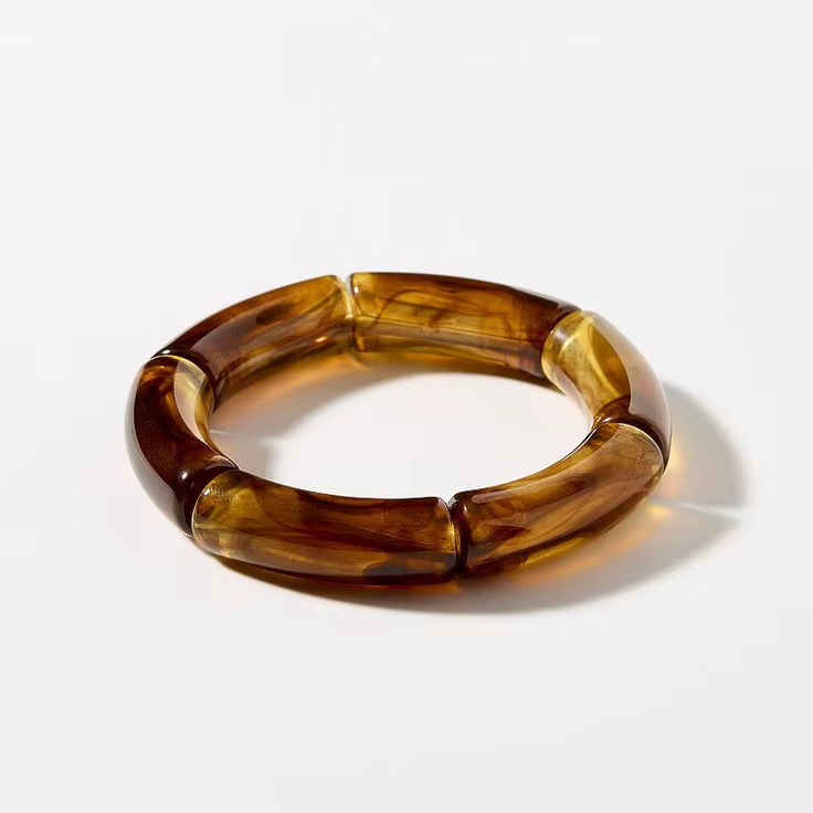 สร้อยข้อมือลูกปัดเรซินสีเหลืองอำพันเครื่องประดับอินเทรนด์ทนทานสำหรับผู้หญิงสร้อยข้อมือลูกปัดซ้อนกันได้เครื่องประดับแฟชั่นเรซิน
