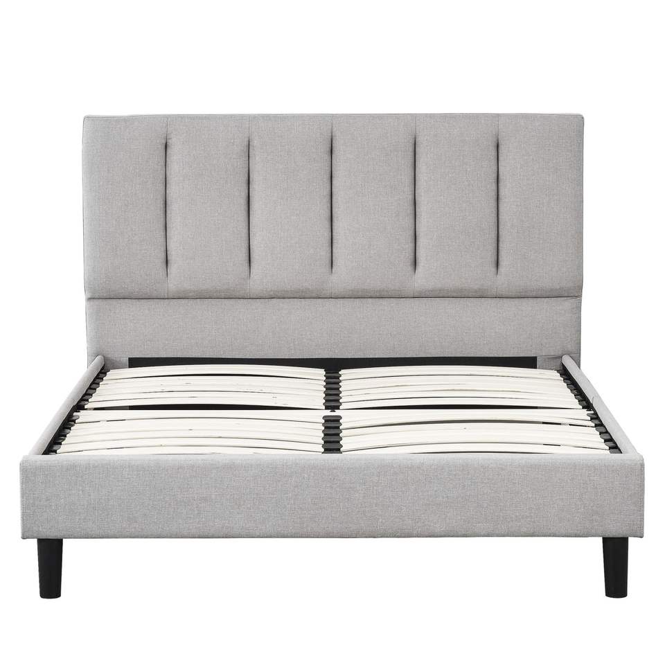 โครงเตียงหุ้มเบาะหุ้มด้วยหัวเตียงสีเทาแบบกระจุกพร้อมหัวเตียง