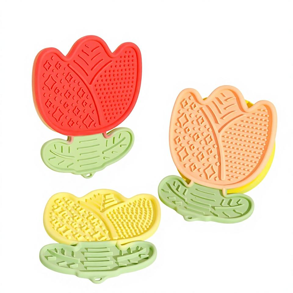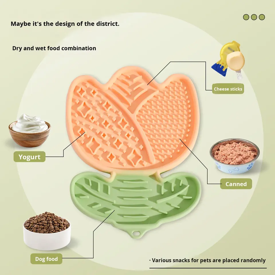 จานซิลิโคนสำหรับสุนัข รุ่นทิวลิป ซีรีส์ แบบมัลติฟังก์ชั่น ทนทาน ป้องกันการสำลัก ช่วยให้กินช้าลง สำหรับสุนัขขนาดกลางและเล็ก