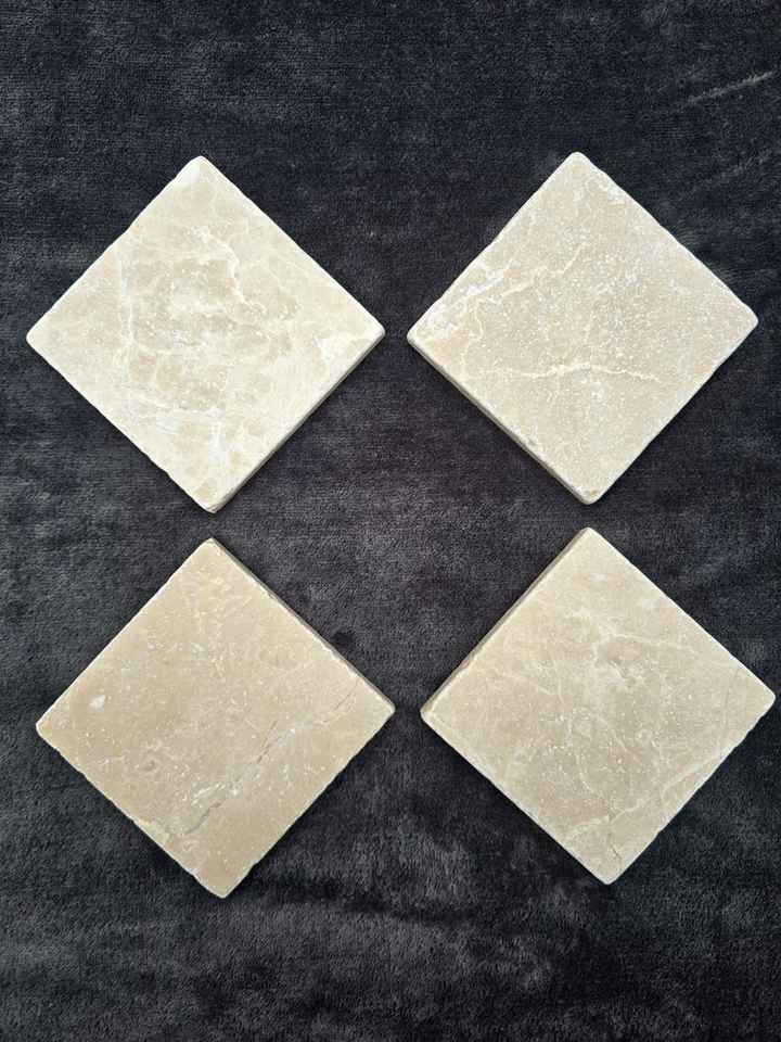 ชุดจานรองแก้วหินอ่อนสีเบจแบบกลม จำนวนสี่ชิ้น ป้องกันการลื่น ทำจากหินธรรมชาติ
