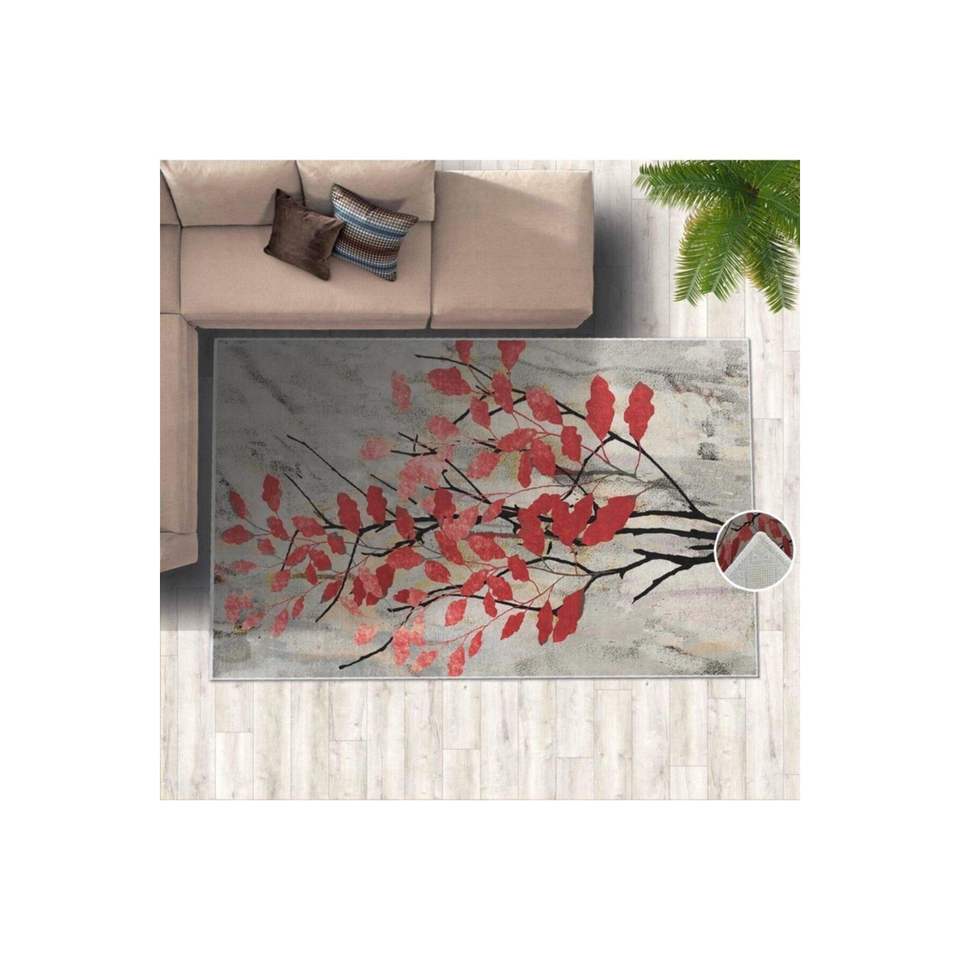 ชุดพรมปูพื้นพิมพ์ลายดิจิทัลต้นไม้ใบไม้สีแดง