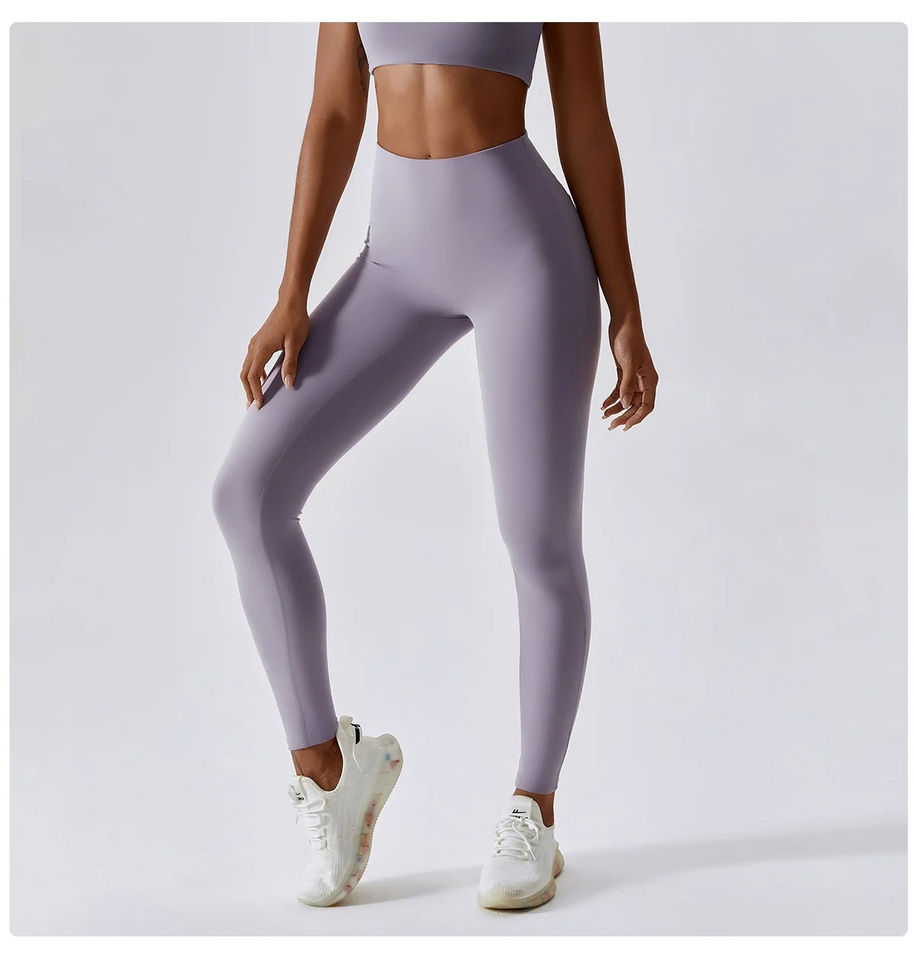 กางเกงเลกกิ้งออกกำลังกายเอวสูงสำหรับผู้หญิง ระบายอากาศได้ดี ผ้าถัก ไม่บาง มองไม่ทะลุ ผ้าไร้ตะเข็บ เหมาะสำหรับโยคะและฟิตเนส