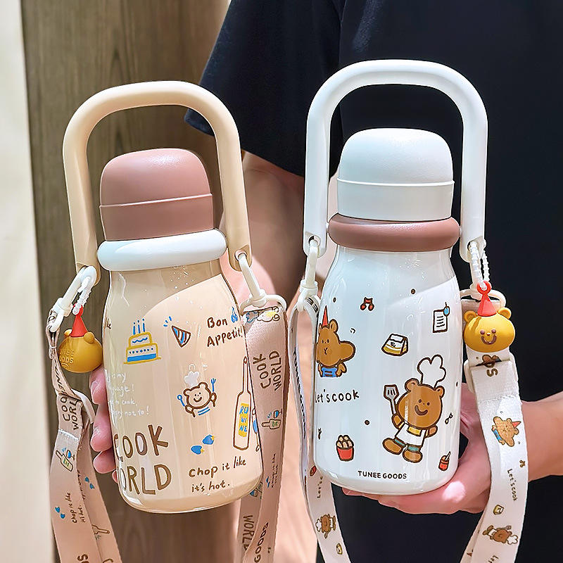 ขวดน้ำเก็บอุณหภูมิสำหรับเด็ก Tunee Goods ขนาด 500 มล. พร้อมสายสะพายสำหรับเด็กนักเรียน กระติกน้ำร้อนลายการ์ตูน