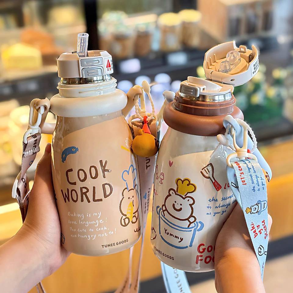 ขวดน้ำเก็บอุณหภูมิสำหรับเด็ก Tunee Goods ขนาด 500 มล. พร้อมหลอดและสายสะพายสำหรับเด็กนักเรียน