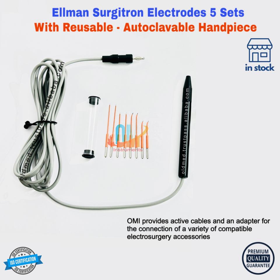ชุดเข็มผ่าตัดขนาดเล็กทังสเตนโคโลราโด 8 ชิ้น พร้อมชุดอิเล็กโทรดสำหรับเครื่อง Ellman Surgitron ได้รับมาตรฐาน CE | เครื่องมือแพทย์ OldMed