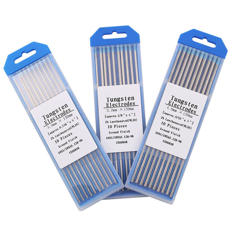 อุปกรณ์เสริมสำหรับเครื่องเชื่อมทังสเตน หัวสีน้ำเงิน 10 ชิ้น ทังสเตนแลนทาเนต 150 มม. เข็มทังสเตน TIG