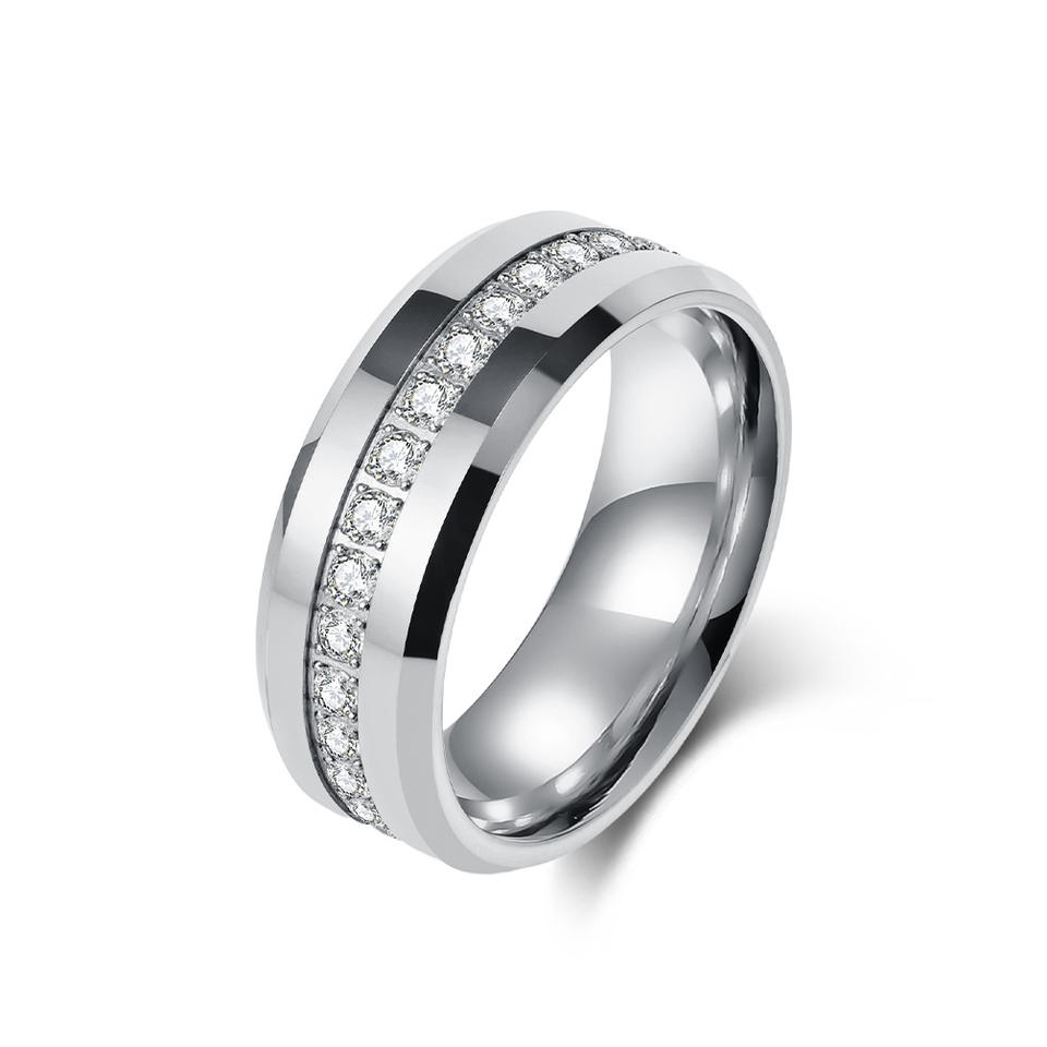 แหวนเพชรทังสเตนสตีล 6 มม. 8 มม. ทรงกลมเจียระไนแบบเหลี่ยมเพชรพลอย แหวนแต่งงานสำหรับทั้งชายและหญิง รูปทรงเรขาคณิต สีไม่ซีดจาง