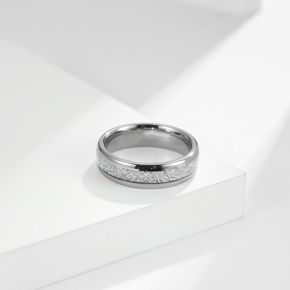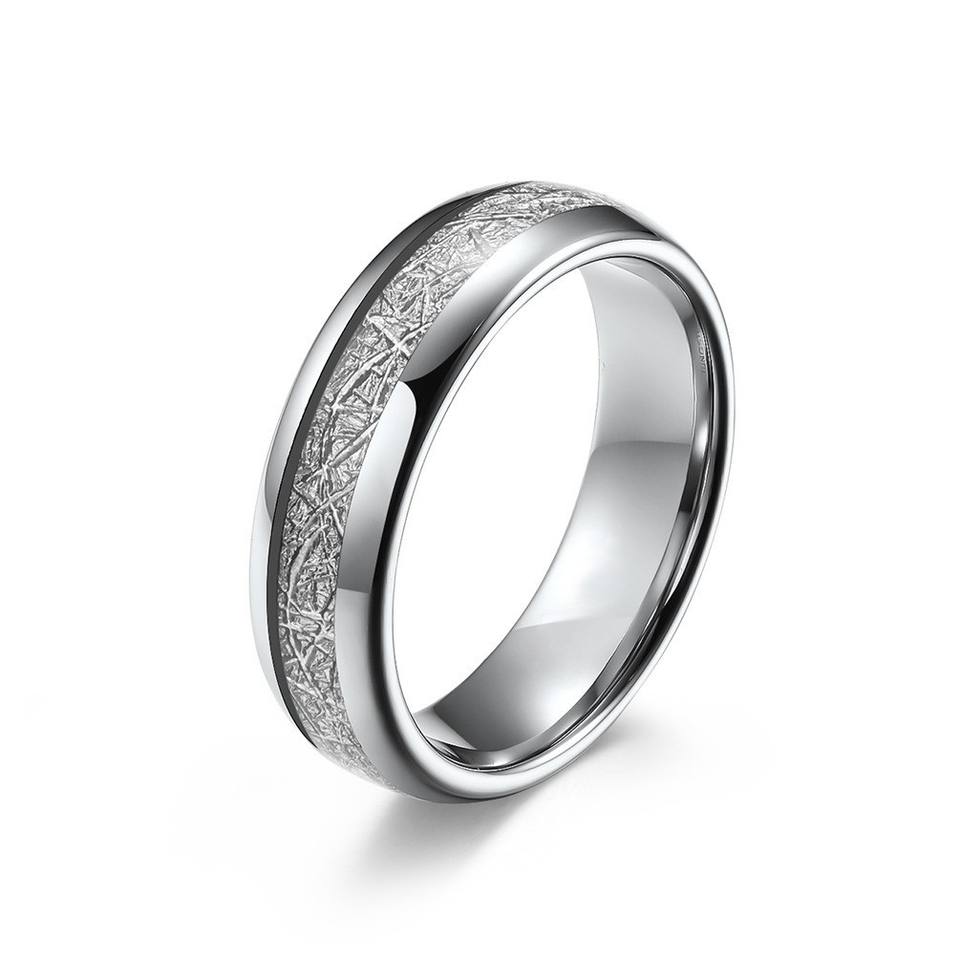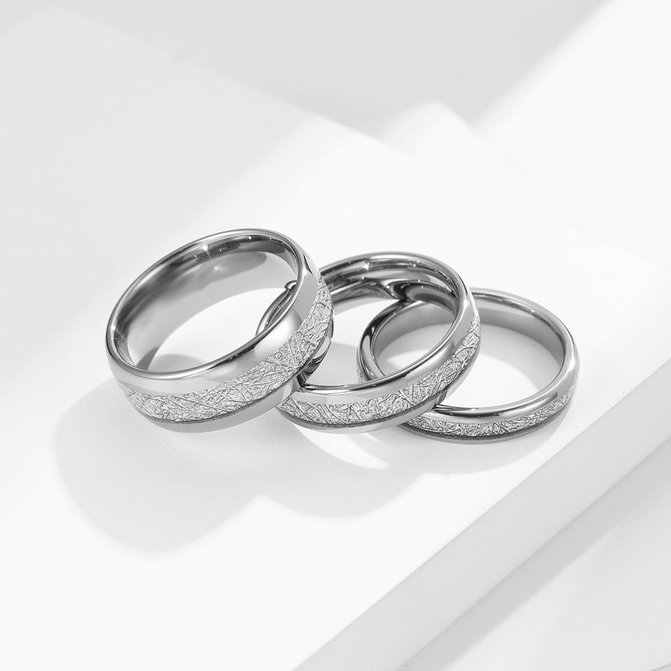 แหวนทังสเตนสตีลฝังด้วยไอซ์ซิลค์ ขนาด 4 มม. 6 มม. 8 มม. แหวนคู่รักสำหรับงานหมั้นและงานแต่งงาน