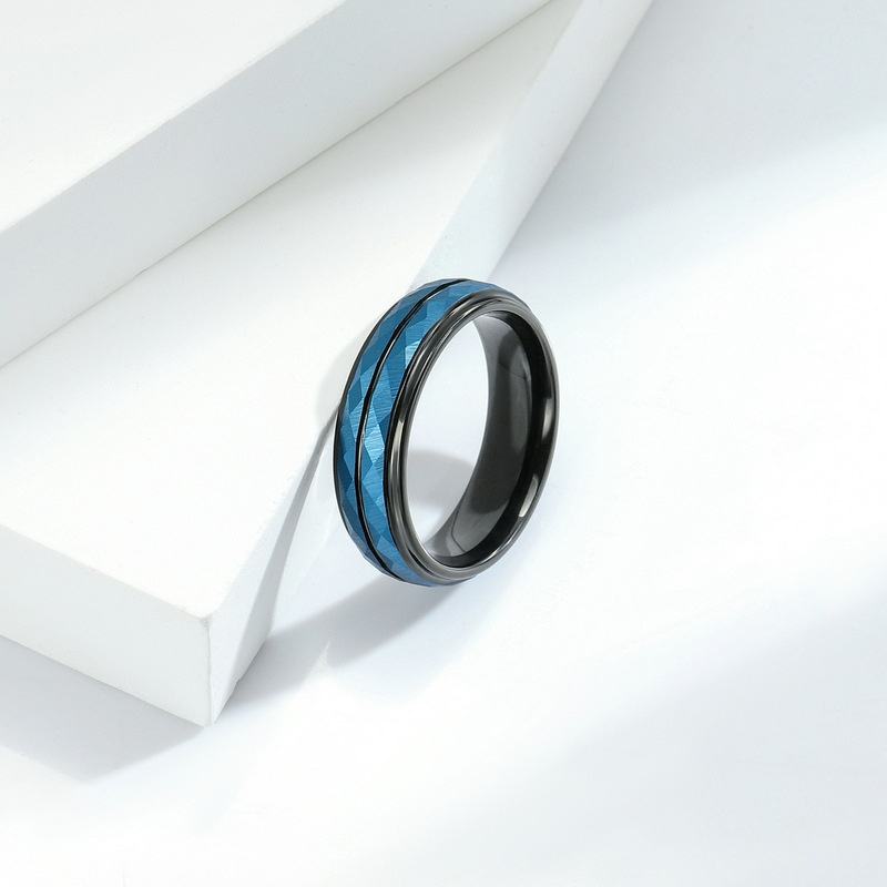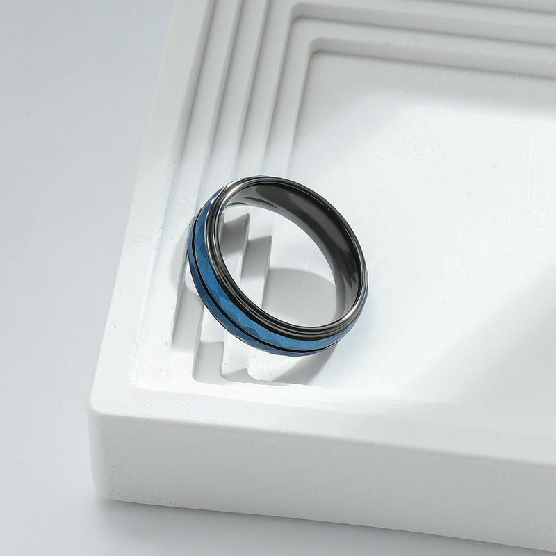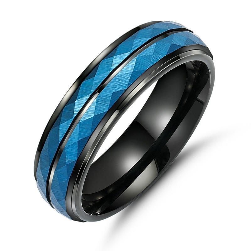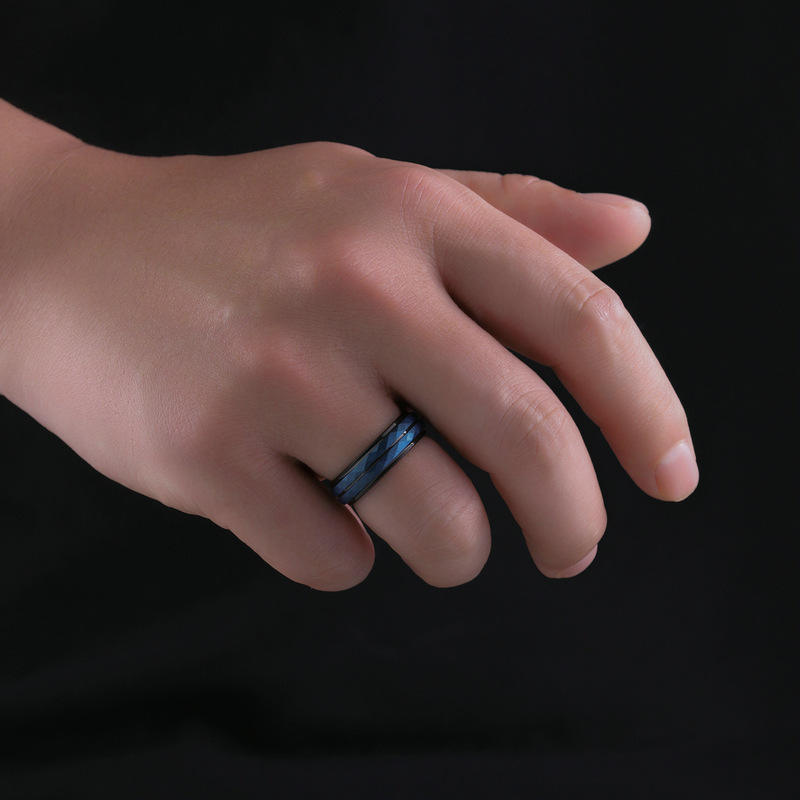 แหวนทังสเตนเหล็ก unisex พื้นผิวทรายเรียบง่ายพร้อมดอกไม้ตัดทันสมัยฝังทองสีดำชุบแซฟไฟร์เครื่องประดับแฟชั่นสำหรับผู้ชาย