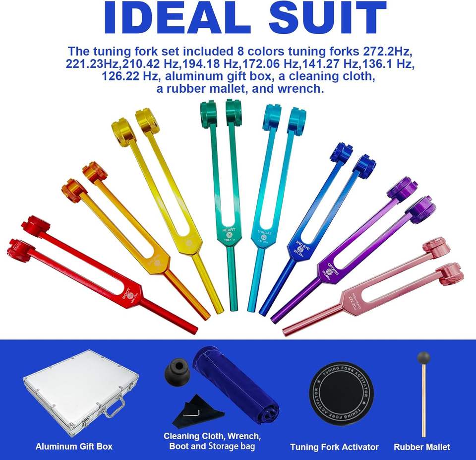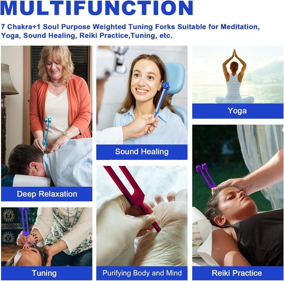 ชุดส้อมเสียงสำหรับบำบัดจักระ ชุดเครื่องมือบำบัดพร้อมอุปกรณ์กระตุ้นส้อมเสียง สำหรับบำบัดด้วย DNA โยคะ การทำสมาธิ
