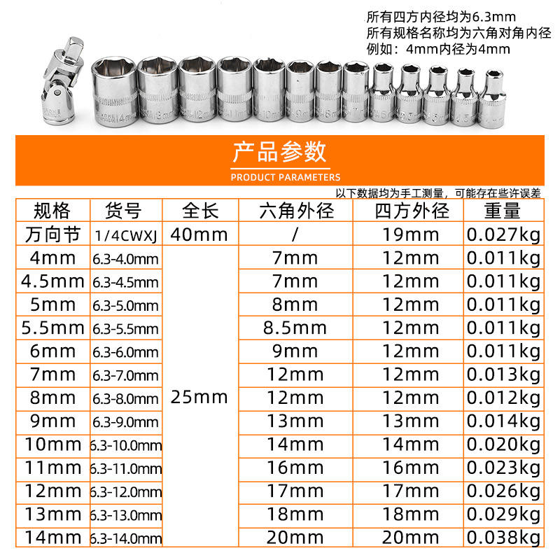 ชุดซ็อกเก็ตหกเหลี่ยมขนาด 1/4 นิ้ว ยี่ห้อ Tuosen ชุบโครเมียม เหล็กกล้าคาร์บอนสูง สำหรับซ่อมแซมยานยนต์
