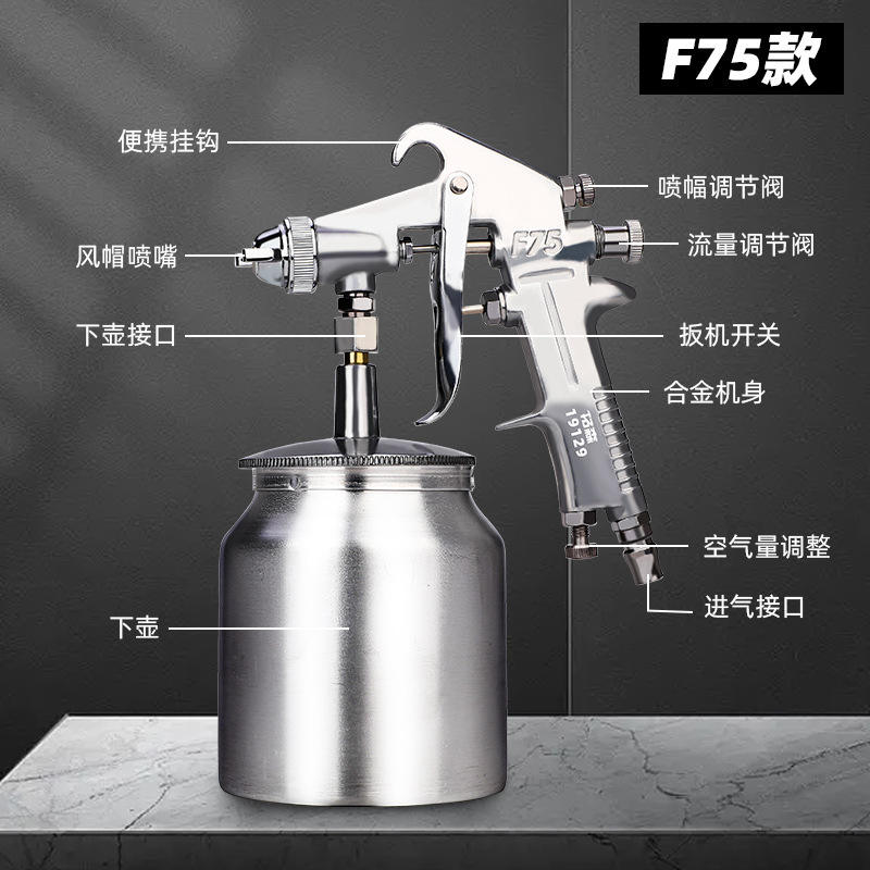 ปืนพ่นสีลม Tuosen รุ่น 19136 แบบป้อนสีด้วยแรงโน้มถ่วง หัวฉีด 1.8 มม. ถ้วย 1000 มล. ระบบพ่นละอองละเอียด สำหรับงานเฟอร์นิเจอร์และงานพ่นสีโลหะ