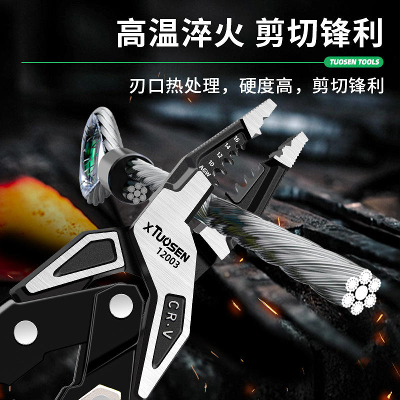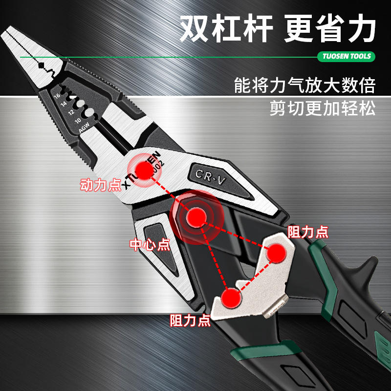 คีมตัดลวดแบบสองข้อต่อ ยี่ห้อ Tuosen ขนาด 140 มม. ผลิตจากเหล็กโครเมียมวาเนเดียม เกรดอุตสาหกรรม สำหรับช่างไฟฟ้า