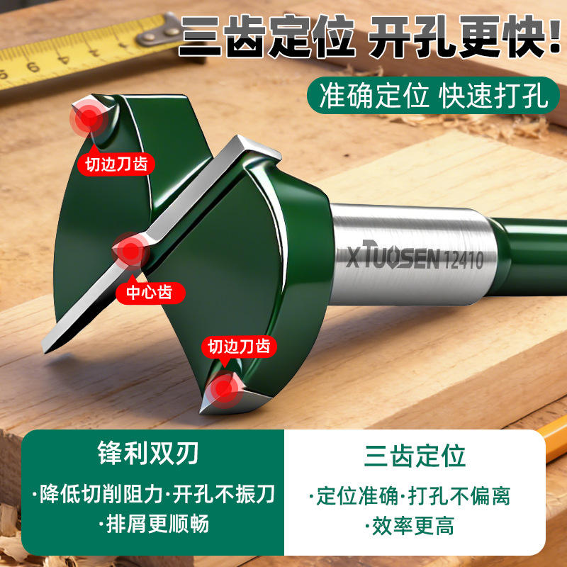 ดอกเลื่อยวงเดือนทูโอเซน 38 มม. ปลายคาร์ไบด์ สำหรับงานไม้ไม้อัด ดอกสว่านเหล็กความเร็วสูง ก้านหกเหลี่ยม