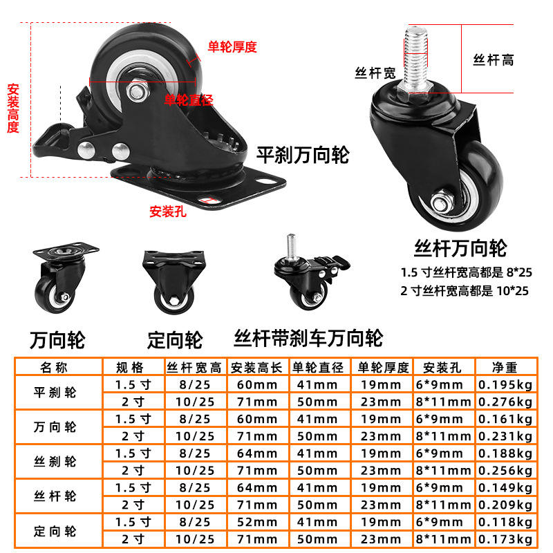 ล้ออุตสาหกรรม Tuosen ขนาด 1.5 นิ้ว แบบหมุนได้ พร้อมเบรก แบบเกลียวล็อค หน้าสัมผัสที่มั่นคง
