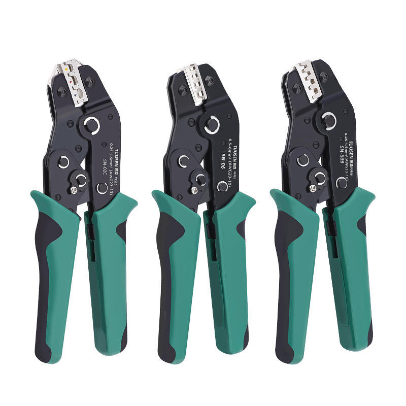 คีมย้ำสายไฟ Tuosen Ratchet ขนาด 23 AWG แบบเข้าด้านหน้า เกรดอุตสาหกรรม ผลิตจากเหล็กกล้าคาร์บอนสูง สำหรับงานเดินสายไฟฟ้า