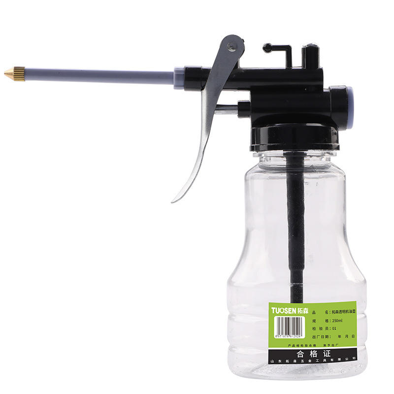 กระป๋องน้ำมันใส Tuosen ขนาด 250 มล. ปืนอัดจาระบีแบบมือ ขวดพลาสติกสำหรับฉีดพ่น สำหรับงานวิศวกรรม