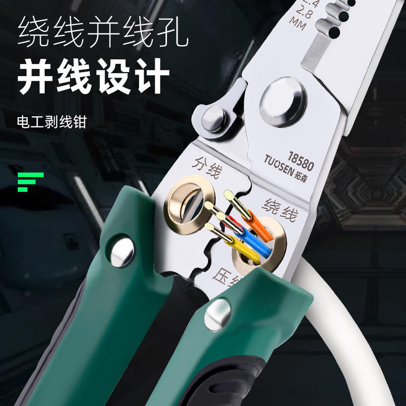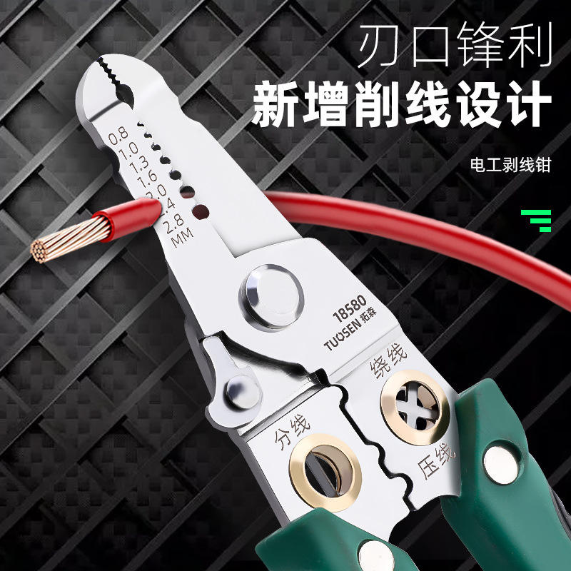 คีมตัดและปอกสายไฟ Tuosen รุ่น 18580 เกรดอุตสาหกรรม ผลิตจากเหล็กกล้าคาร์บอนสูง แบบหนีบด้านหน้า
