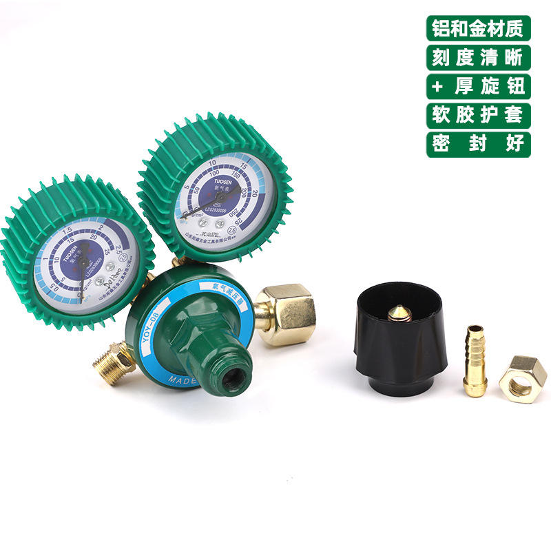 ตัวปรับแรงดันออกซิเจน Tuosen YQY-08 อลูมิเนียมอัลลอย 0.5-1.0 บาร์ พร้อมเกจวัดและฝาครอบป้องกัน