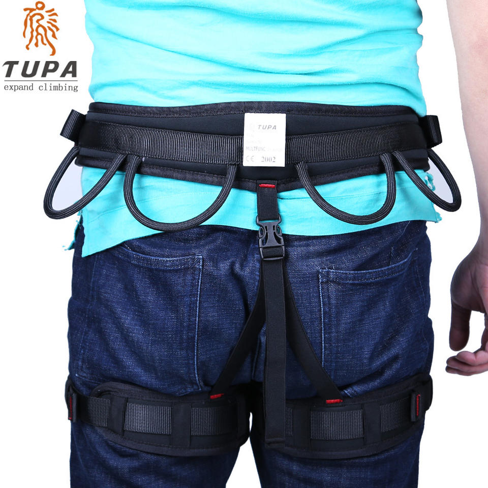 ชุดสายรัดปีนเขาแบบครึ่งตัว Tupa โพลีเอสเตอร์ ปรับได้ เชื่อมต่อเร็ว 4 ห่วงรูปตัว D พร้อมแผ่นรองเอว อุปกรณ์นิรภัยสำหรับกิจกรรมกลางแจ้ง
