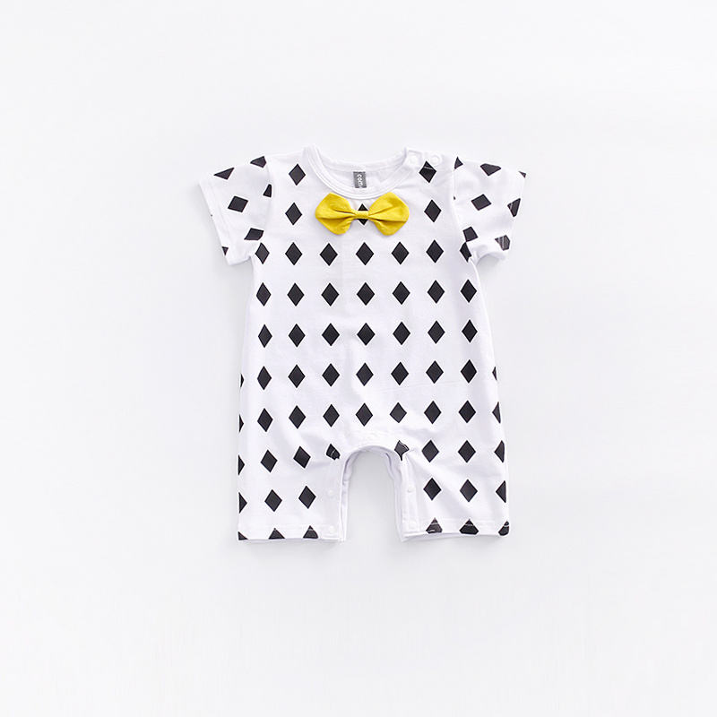 เสื้อผ้าเด็กผู้ชาย ชุดเด็กน่ารัก ชุดรอมเปอร์ฤดูร้อนพร้อมโบว์ไท