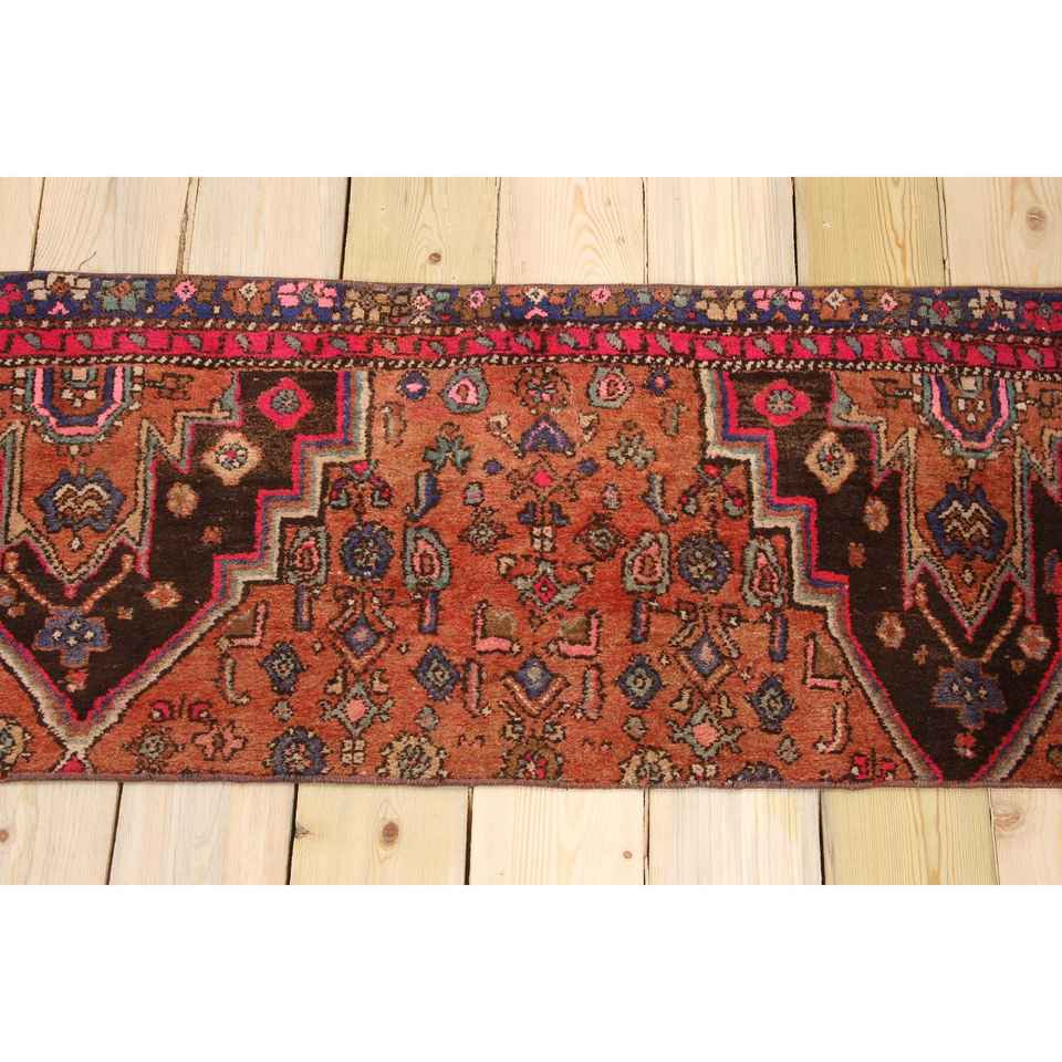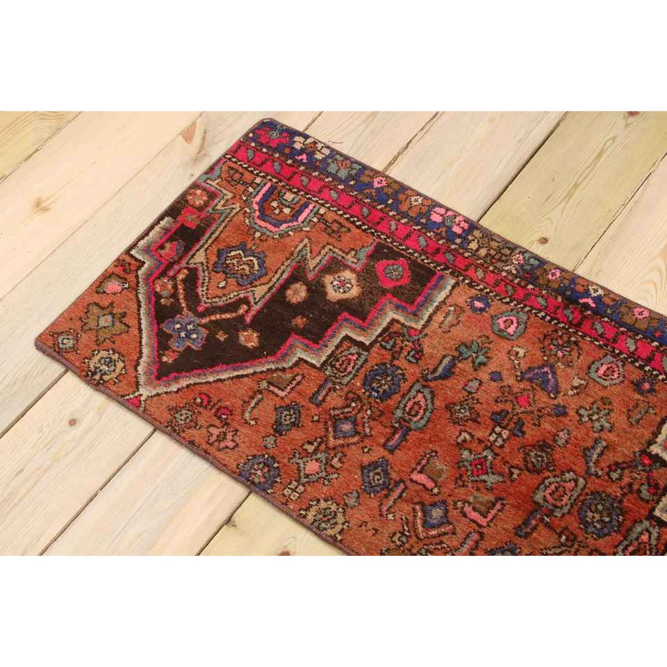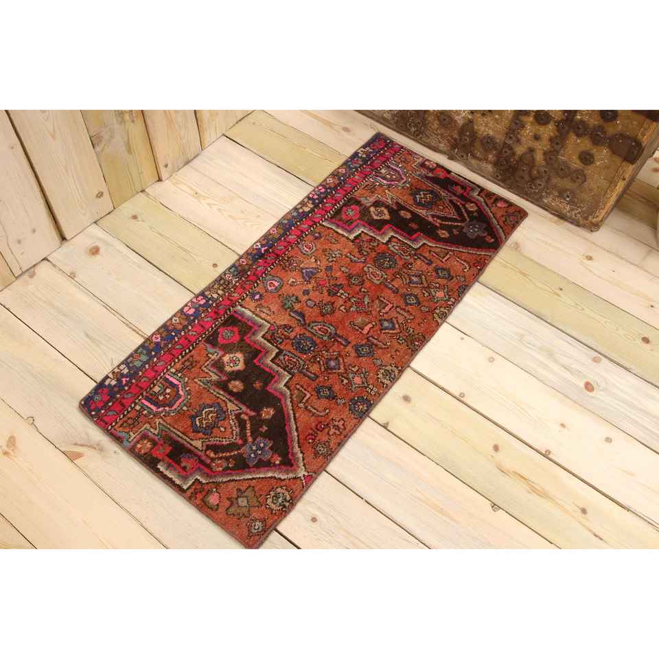 พรมตุรกีขนาดเล็ก 1.5x3.37 ฟุต พรมวินเทจ พรมลายทางสีแดง