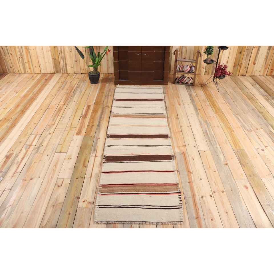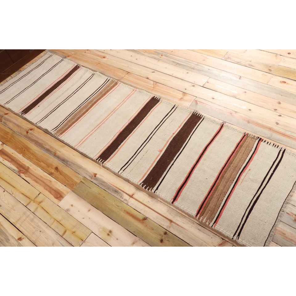 พรมวิ่งสไตล์ตุรกี ขนาด 2.6x9.5 ฟุต พรมวินเทจ พรมคิลิมสีน้ำตาลไล่เฉด