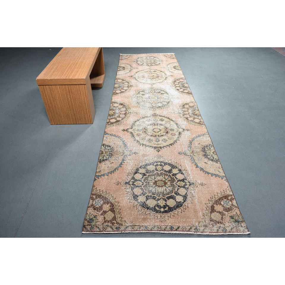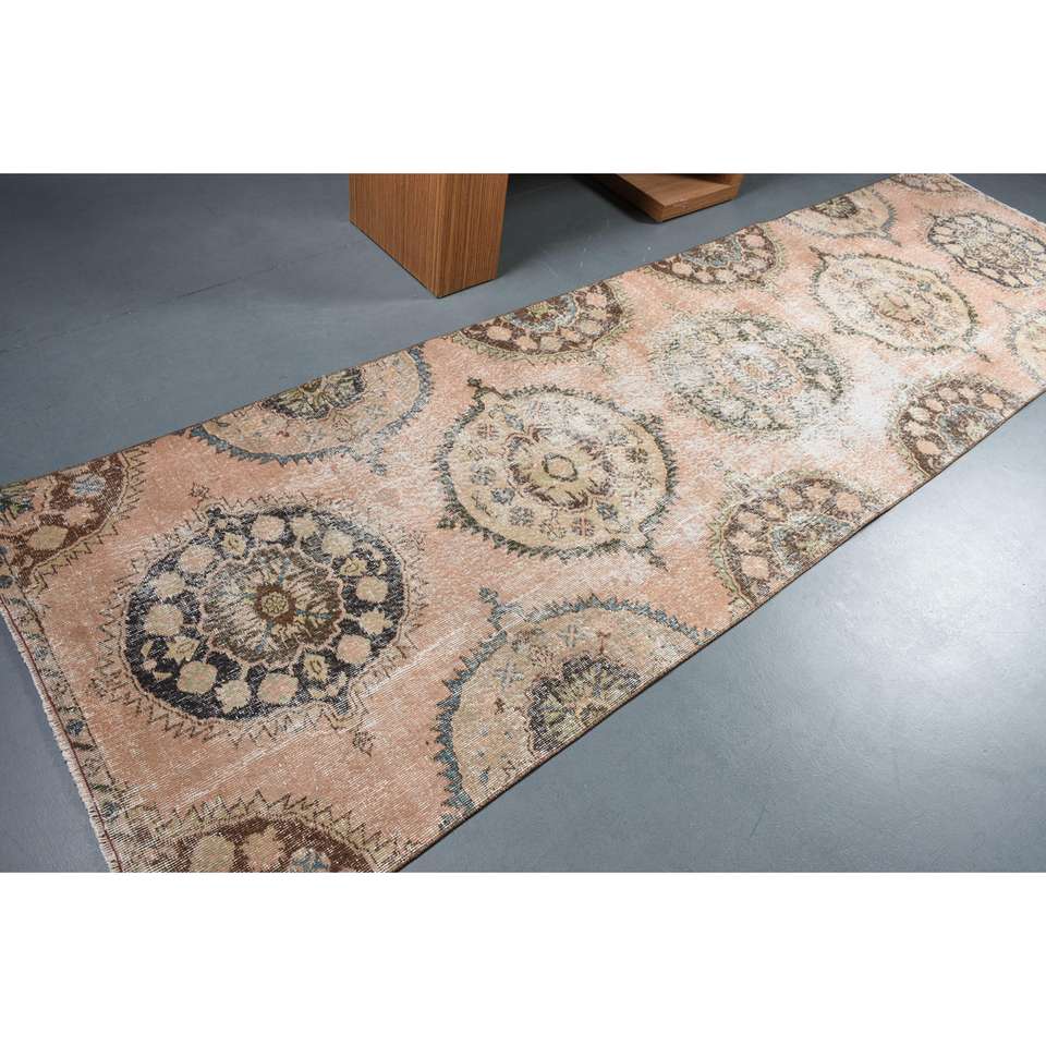 พรมตุรกีขนาด 3.4x11.7 ฟุต พรมวินเทจ พรมขนสัตว์สีน้ำตาลแบบตะวันออก